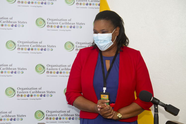 The OECS handed over Saint Lucia's allocation of the Brazilian donation to the island's Chief Medical Officer Dr. Sharon Belmar-George.