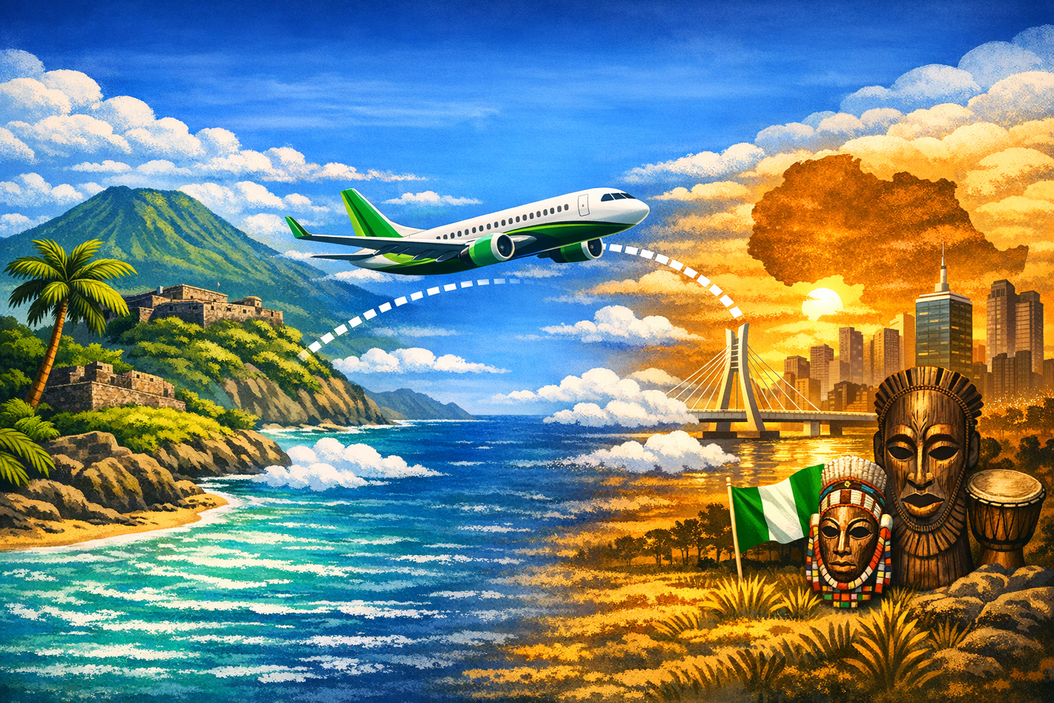 This flight serves as more than a transit route; it is a powerful symbol of "Reverse Middle Passage" economic empowerment. By bypassing traditional, time-consuming layovers in Europe or North America, the OECS is asserting its direct connection to the African continent.
