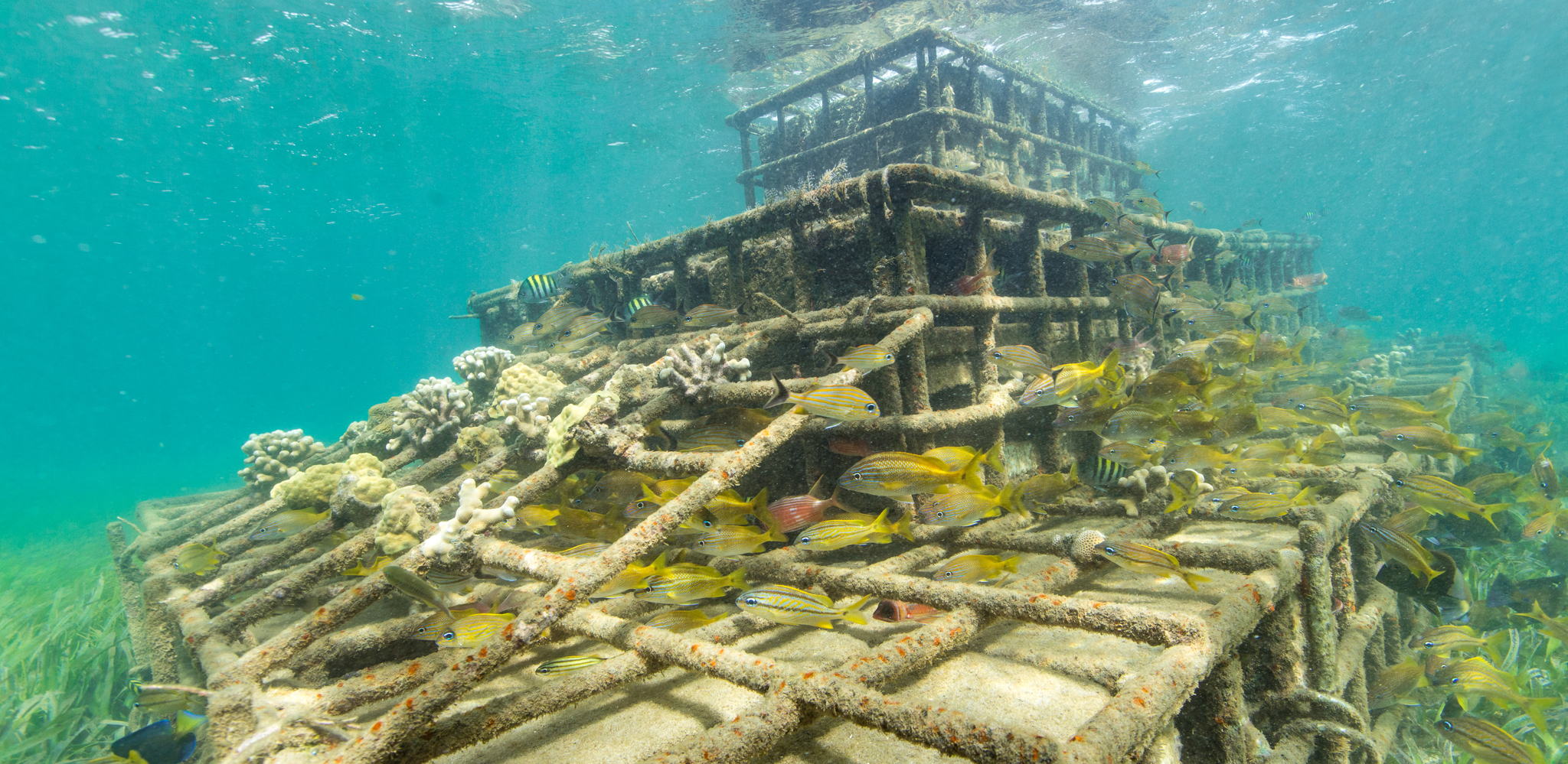 The innovative design is constructed from locally sourced inexpensive materials, utilized local community labor, was easy to ensemble on-site, is suitable for high wave energy or hurricane exposure, and is specially designed to encourage habitat restoration and enhancement. Live coral fragments from the existing reef were placed onto the structure to encourage natural reef growth. This approach is designed to be replicated in small island communities, which are often the most susceptible to the impacts of climate change.