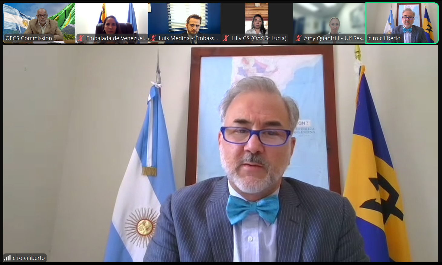 L’Ambassadeur de la République Argentine auprès de l’Organisation des États de la Caraïbe Orientale (OECO), Son Excellence Ciliberto Infante, a présenté ses lettres de créance au Directeur général de l’OECO, Dr Didacus Jules, lors d’une cérémonie virtuelle tenue le mercredi 30 octobre 2024 au siège de l’OECO à Castries, Sainte-Lucie.