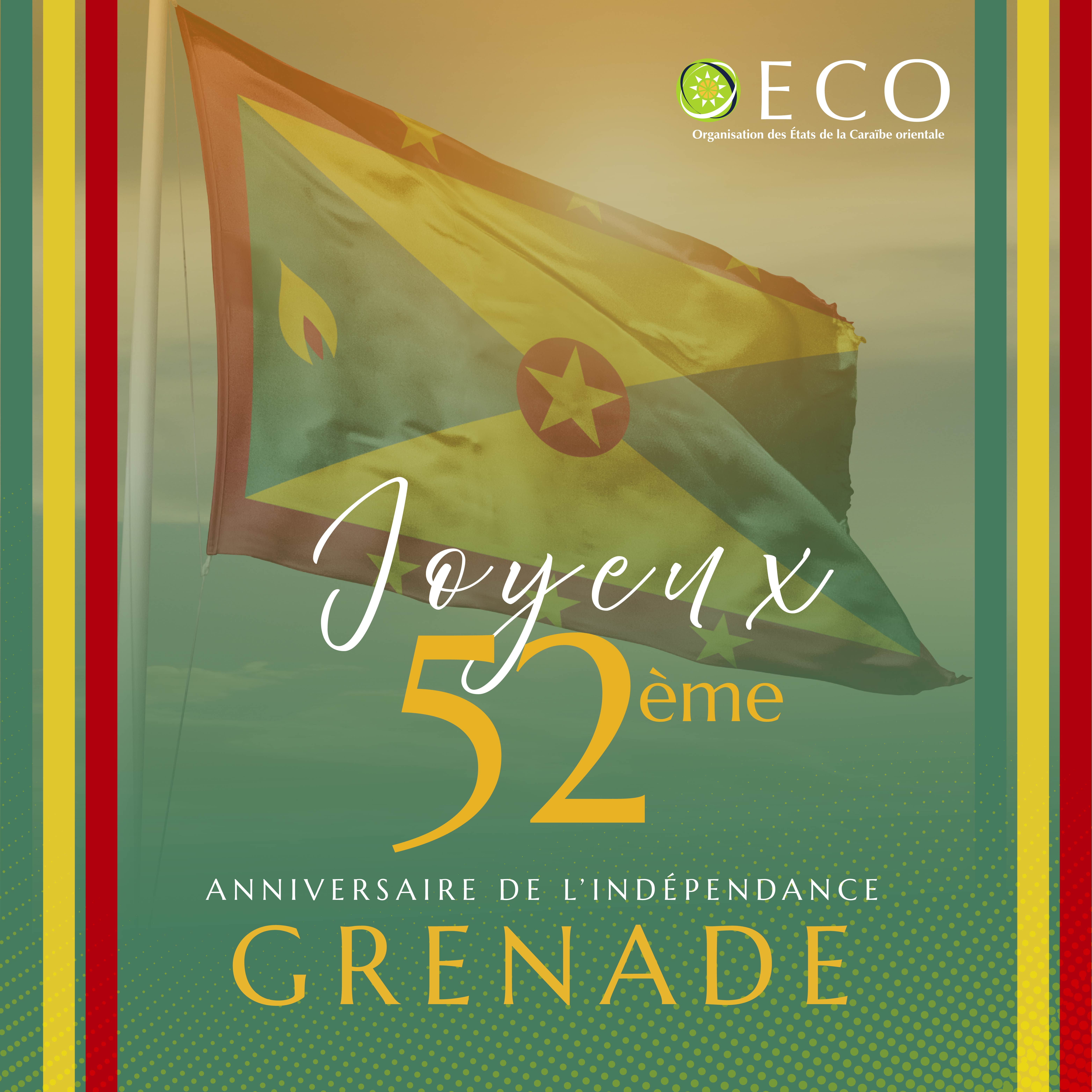 La Commission de l'Organisation des États de la Caraïbe Orientale (OECO) s'associe aux citoyens grenadiens pour célébrer le 52e anniversaire de leur indépendance, sous le thème puissant : « La Grenade à 52 ans : Ancrée dans la foi, guidée par la détermination ». Cette commémoration est marquée par l'engagement du pays à affronter les turbulences climatiques, politiques, économiques et diplomatiques avec la constance et la grâce qui font la renommée de son peuple.