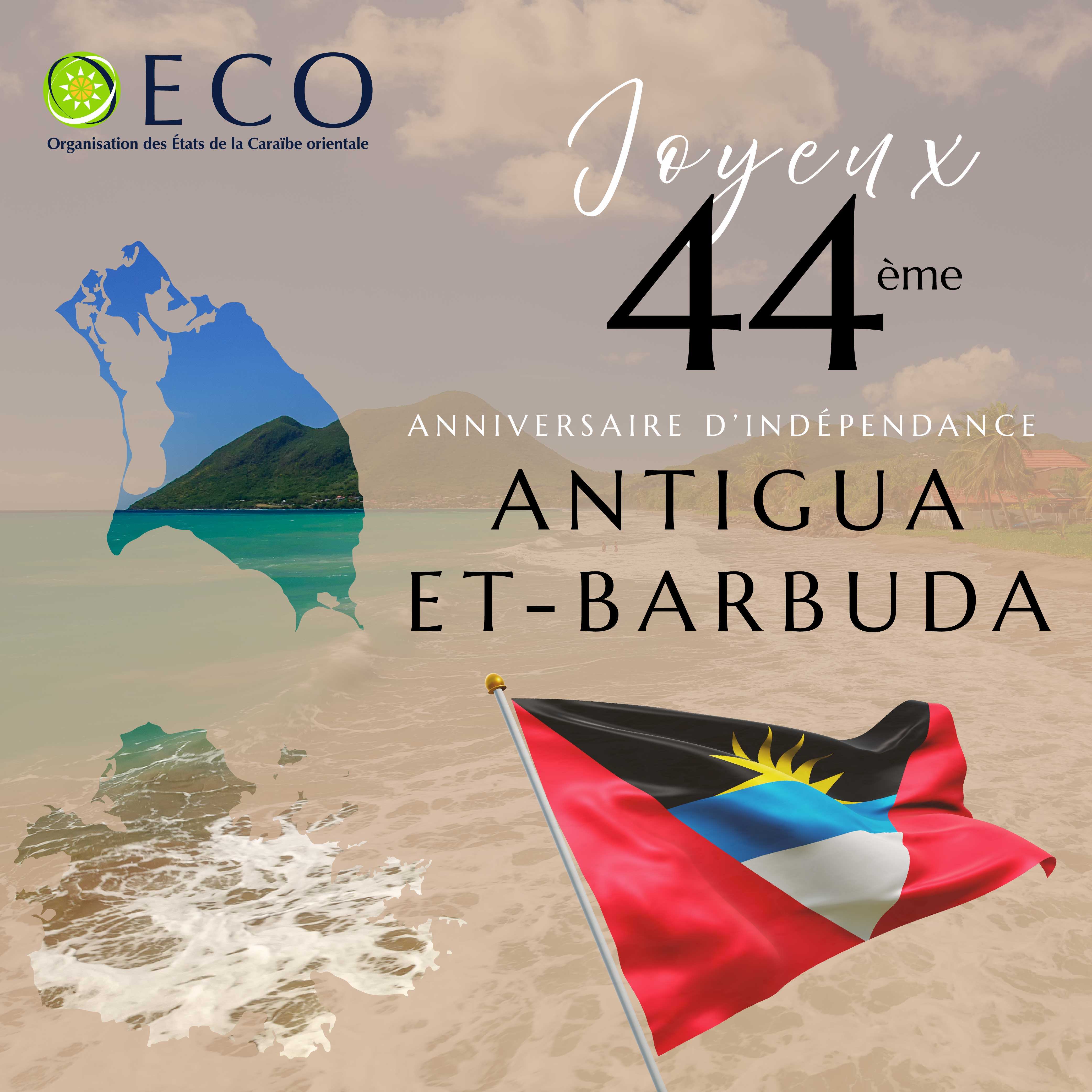 La Commission de l’Organisation des États de la Caraïbe orientale (OECO) adresse ses plus chaleureuses félicitations au Gouvernement et au peuple d’Antigua-et-Barbuda, à l’occasion du 44e anniversaire de leur indépendance, célébré le 1er novembre 2025, sous le thème :