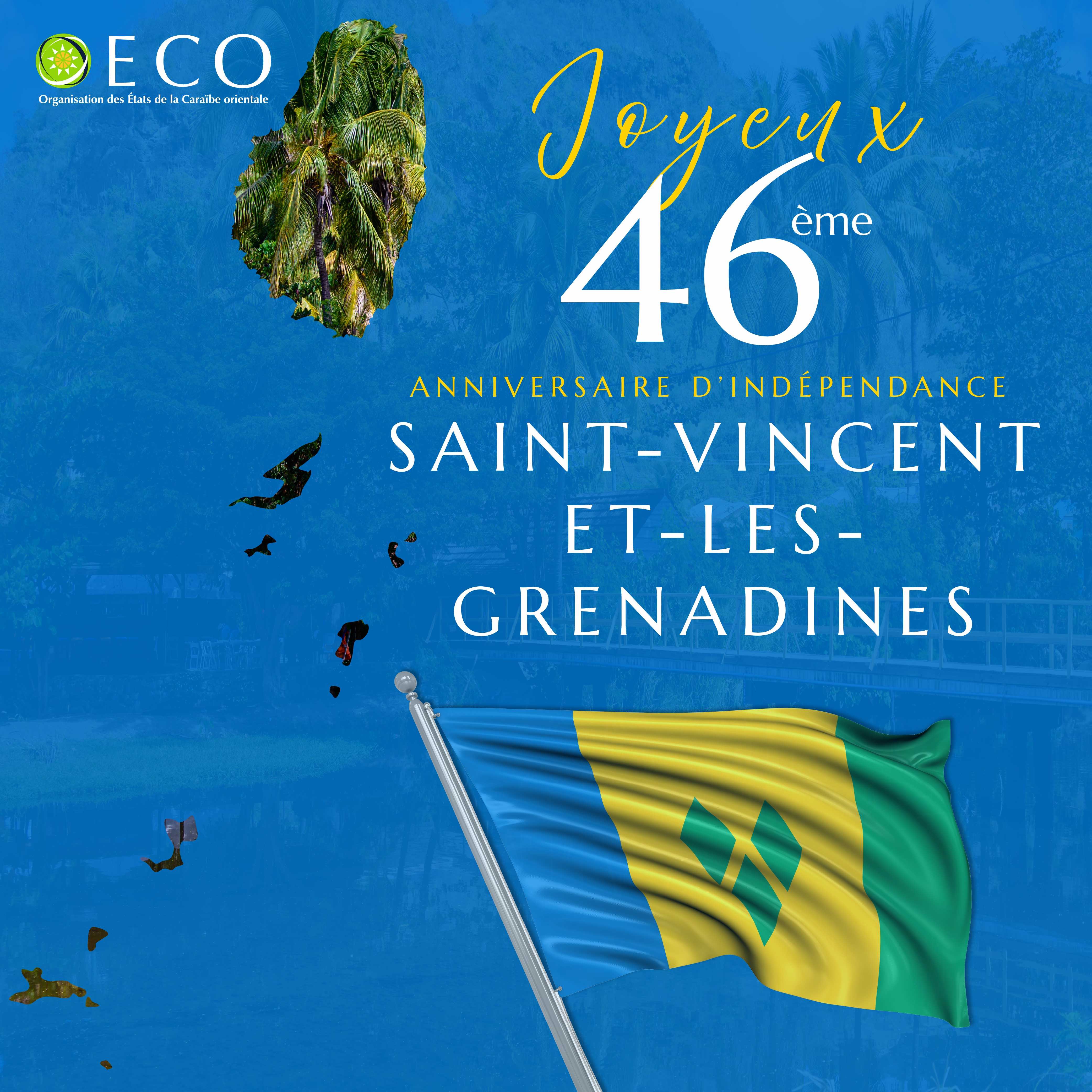La Commission de l’Organisation des États de la Caraïbe orientale (OECO) adresse ses plus chaleureuses félicitations au gouvernement et au peuple de Saint-Vincent-et-les-Grenadines, à l’occasion du 46e anniversaire de l’indépendance nationale, célébré le 27 octobre 2025.