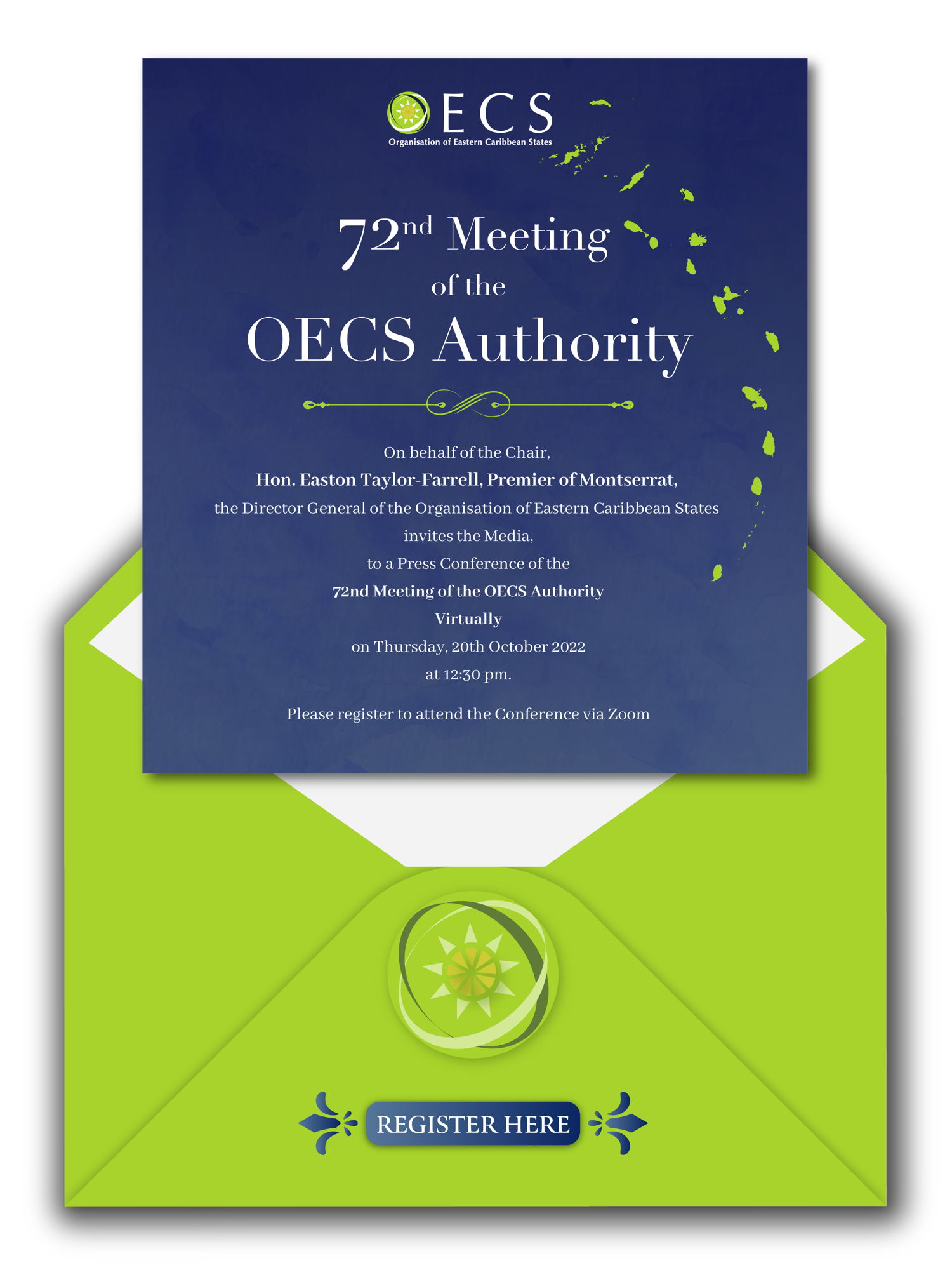 OECS Heads of Government have convened the 72nd Meeting of the OECS Authority from October 19th-20th 2022 in Montserrat. The Meeting is being hosted under the Chairmanship of Hon. Easton Taylor-Farrell, Premier of Montserrat. You are invited to join the OECS Authority at a Press Conference to conclude the 72nd Authority Meeting.