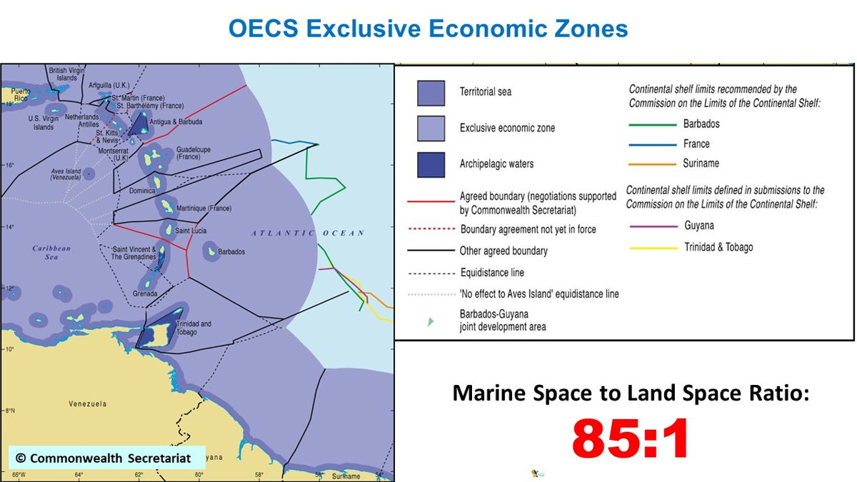The Members of the Organization of East Caribbean States (OECS) are surrounded by both the Caribbean Sea and the Atlantic Ocean. While we are typically referred to as SIDS, we are also big sea and large ocean states as much as we are small island developing states. For instance, OECS Member States enjoy an Economic Exclusive Zone (EEZ)-to-land space-ratio of approximately 85:1 and this implies the huge potential for the sustainable use and commercialization of ocean-based goods and services. This is the sort of mind-set that we need to adopt to orient us to seeing the vast potential that exists in the Oceans Economy and Blue BioTrade.