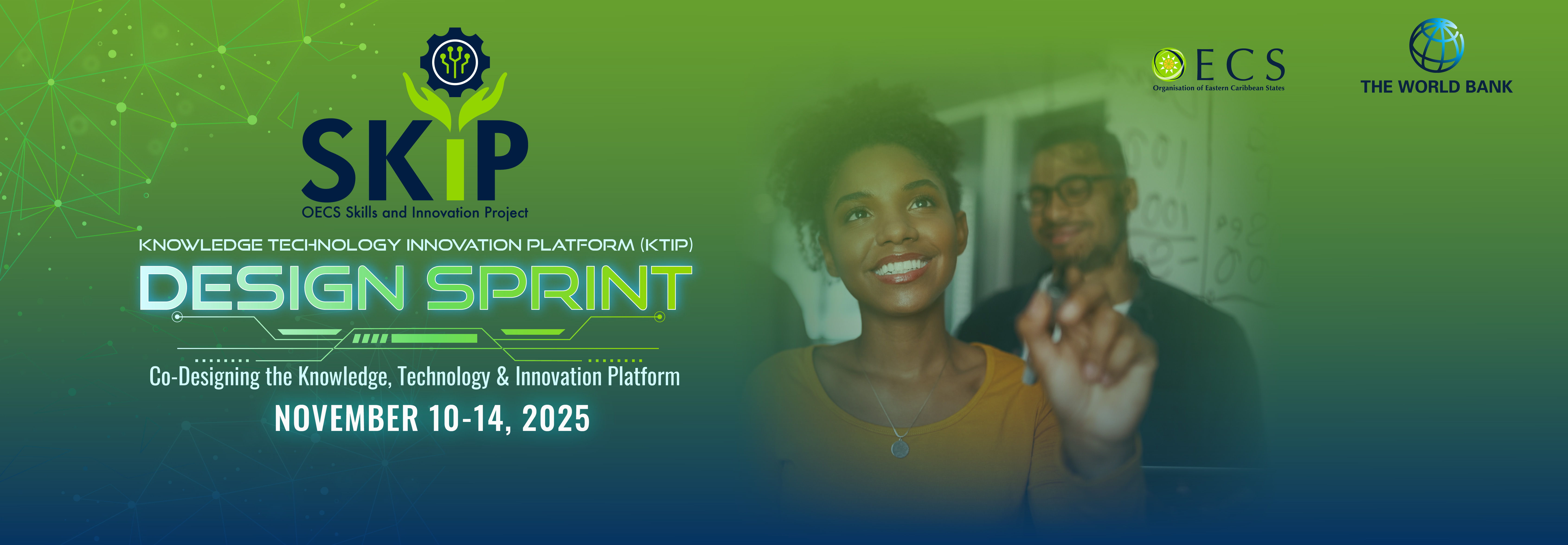 From November 10-14, 2025, the World Bank-funded Organisation of the Eastern Caribbean States (OECS) Skills and Innovation Project (SKIP) is hosting an Innovation Design Sprint- a focused, fast-paced, collaborative workshop designed to bring together experts to quickly conceptualise, design, prototype, and test a solution to the problem of insufficient private sector involvement in post secondary education sector.